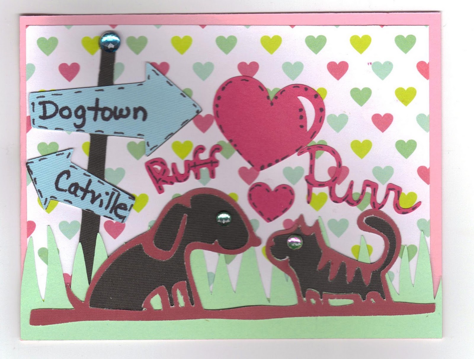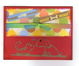 - “Meow” and “Woof” Sentiments cut from same paper pad