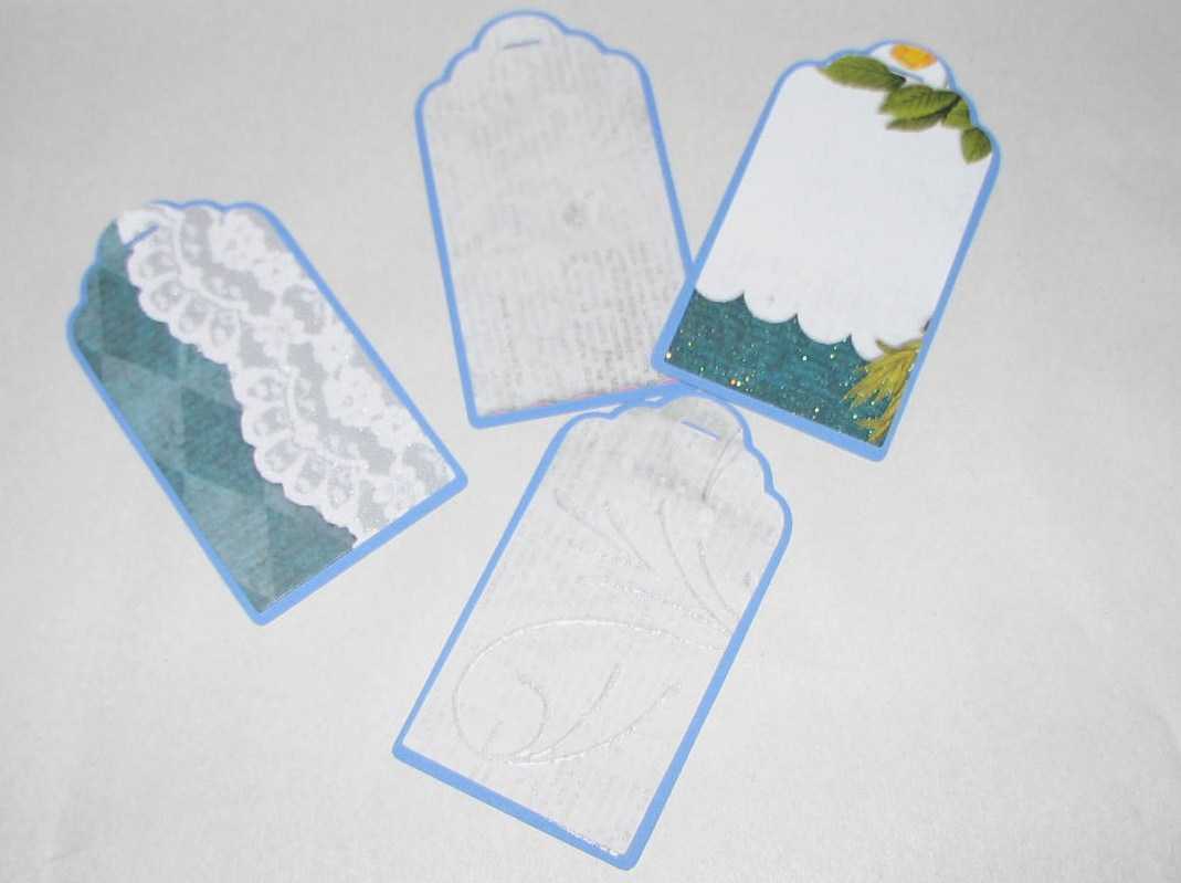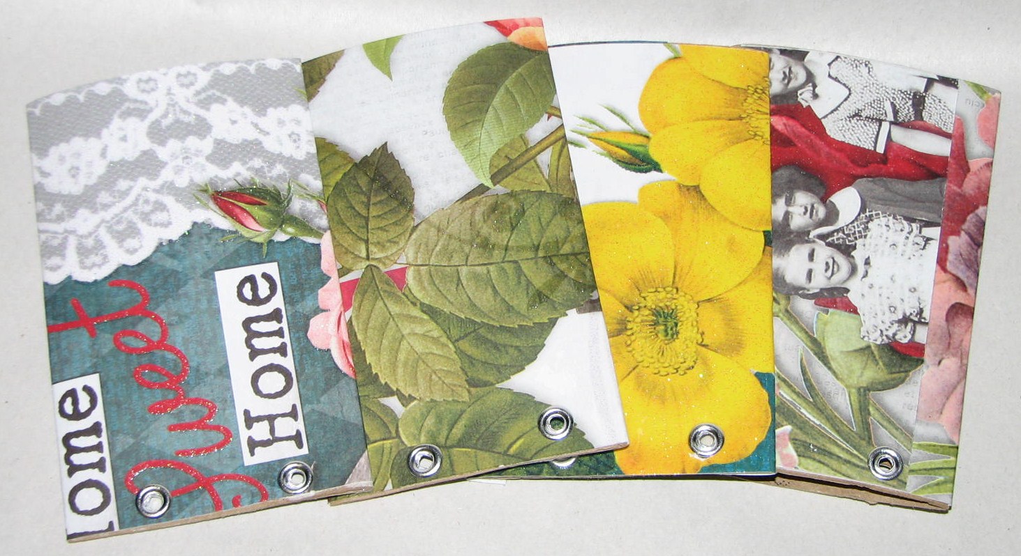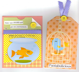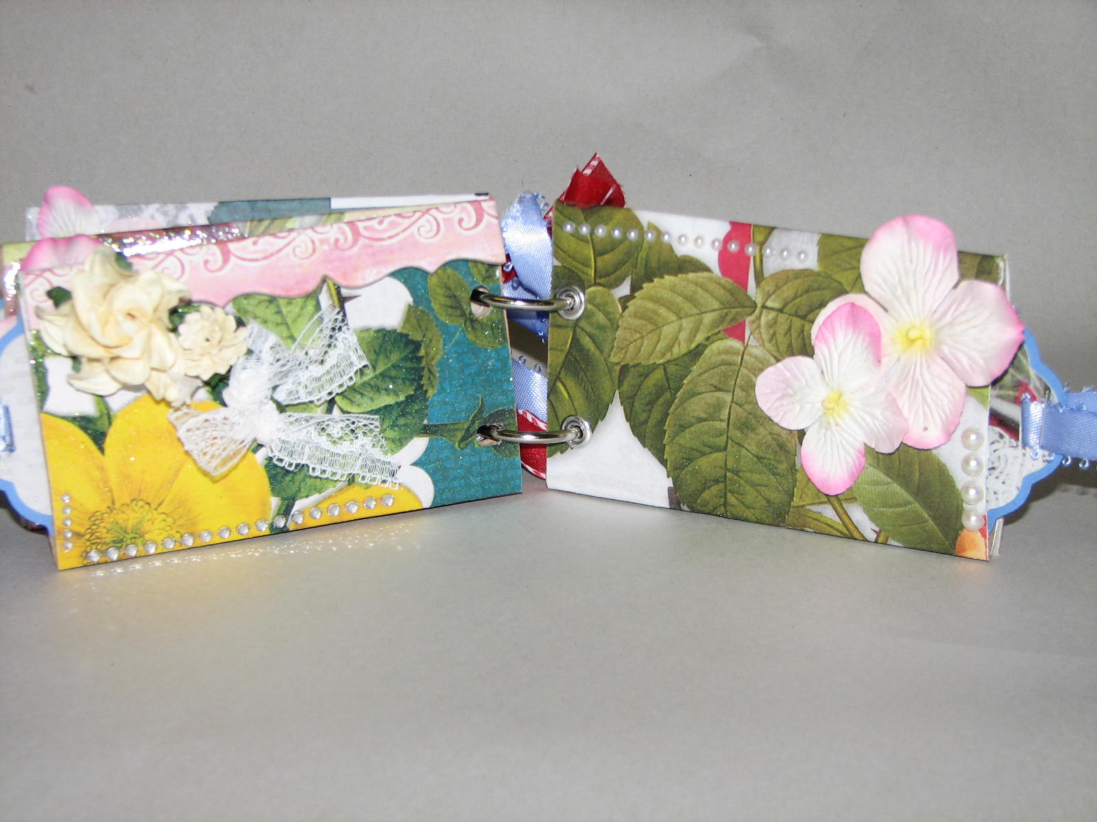 I make my mini album pages uses A2 size cards. I just seal the bottom and side so that I can slip a tag in the top with the answer to the question on it.