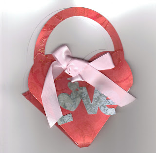 If I had some tissue paper around here, I'd place it 'ever just so' in this heart bag. Just use your imagination that it's in there. I think I'm going to fill this with little slips of paper with little verses about LOVE. My sister has a very special day coming up in February, and I know she would just love this.