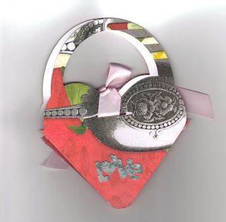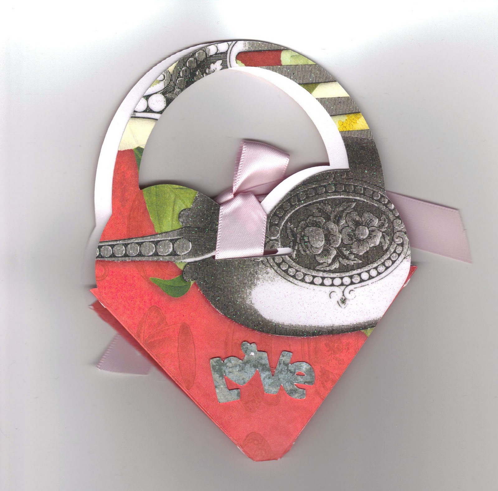 Here is my LOVE purse made with TAGS, BAGS, BOXES & MORE Cricut Cartridge on page 117 cut @ 6" using DCWV The Vintage Collage Stack.