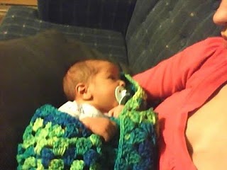 | Kevin in blanket I crocheted for him with his Mom, Keri |