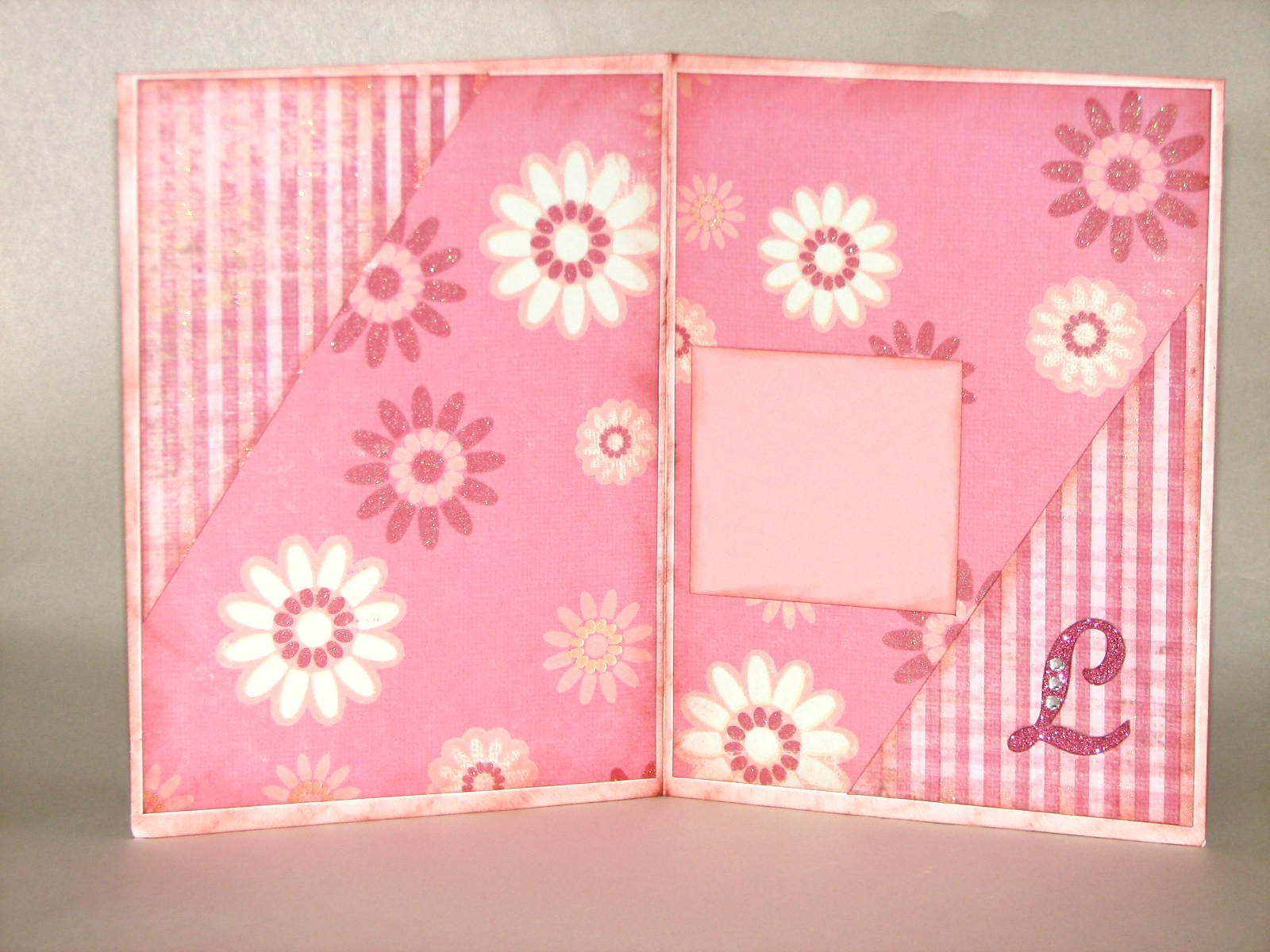 Card base is Recollections pink cardstock cut in 1/2 to make a standard size A2 card. Card opens on left side instead of at top.
